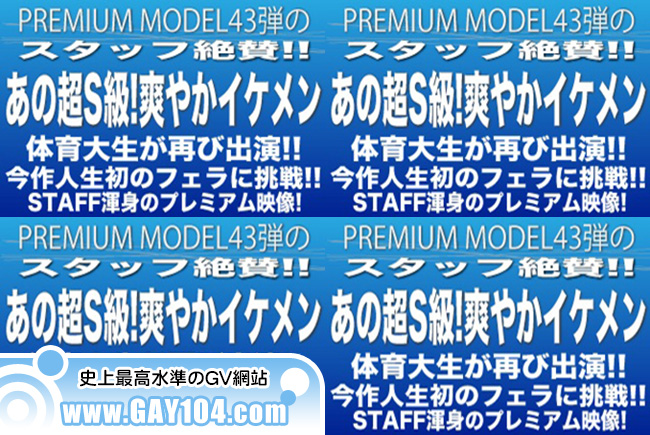 プレミアムモデル第43弾‼スタッフ絶賛‼あの超S級…爽やかイケメンすぎる体育大生が再び…今作人生初のフェラに初挑戦‼お客様からのご要望多数‼「爽やかすぎる‼」「この彼のファンになりました‼」などなど、このジャニ系で甘いマスクをしたプレミアムモデルの再出演を望む声が多かったため、スタッフが再出演を交渉‼しかも今作では何と‼スタッフのチンコをしゃぶりまくってしまう期待作‼スタッフ一押し★必見です…しかしこの彼、やはりイケメンすぎます‼しかも前作より、緊張がほぐれたのかエロさは増し、スタッフと絡み合うかのように撮影はスタート‼キス→69、さらにぶっかけとやりたい放題‼最後は自らの顔まで飛んでしまうほどの大量発射を披露‼ここでしか見られない貴重映像…この機会お見逃しなく☆